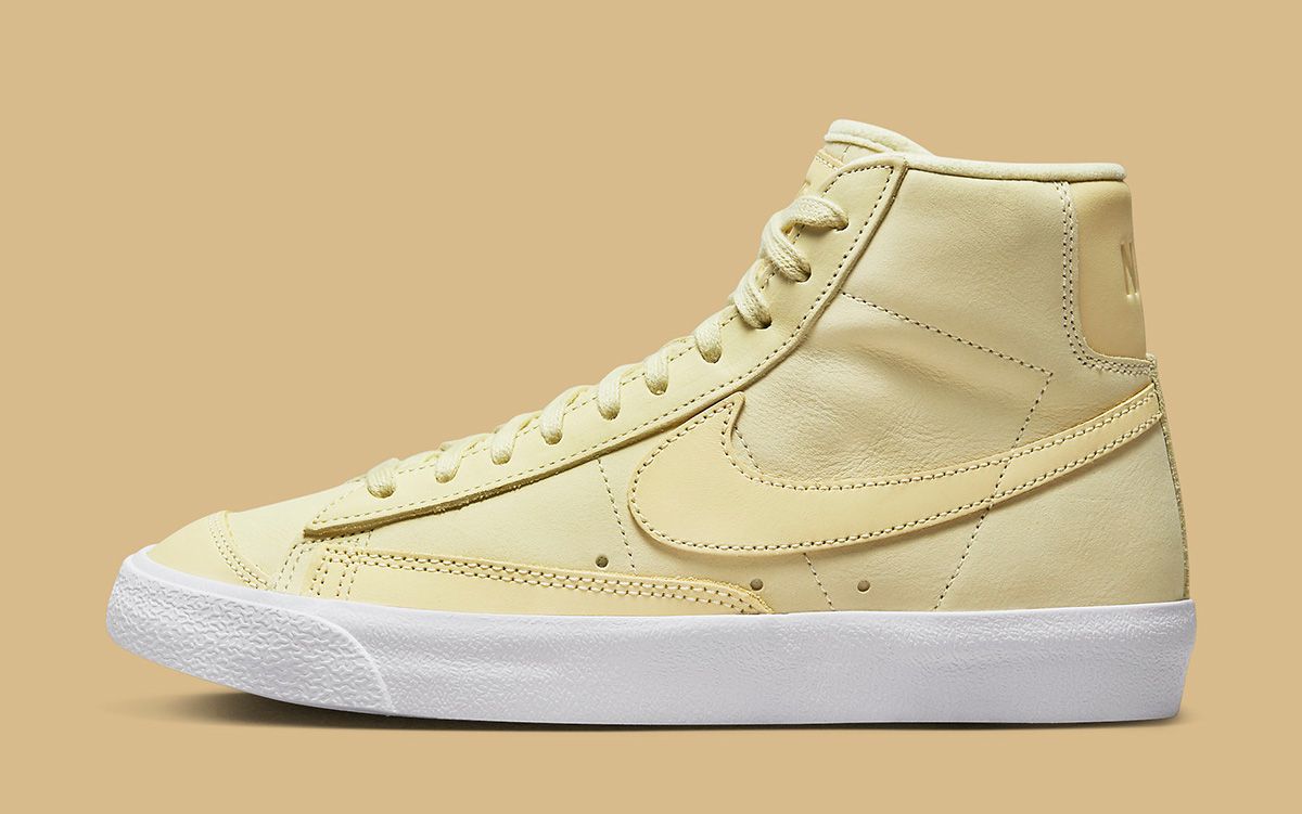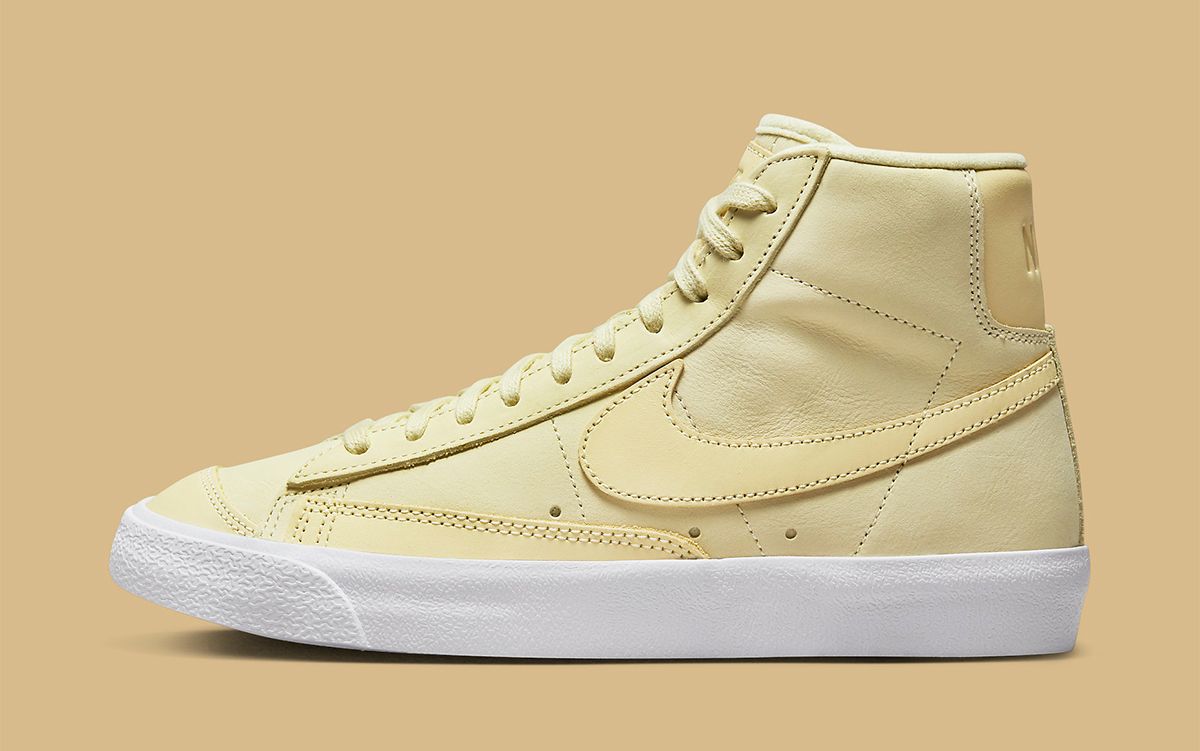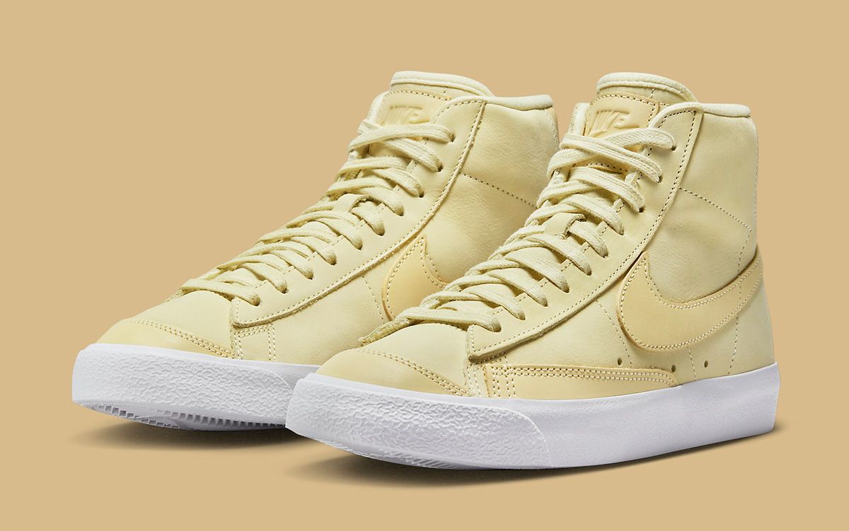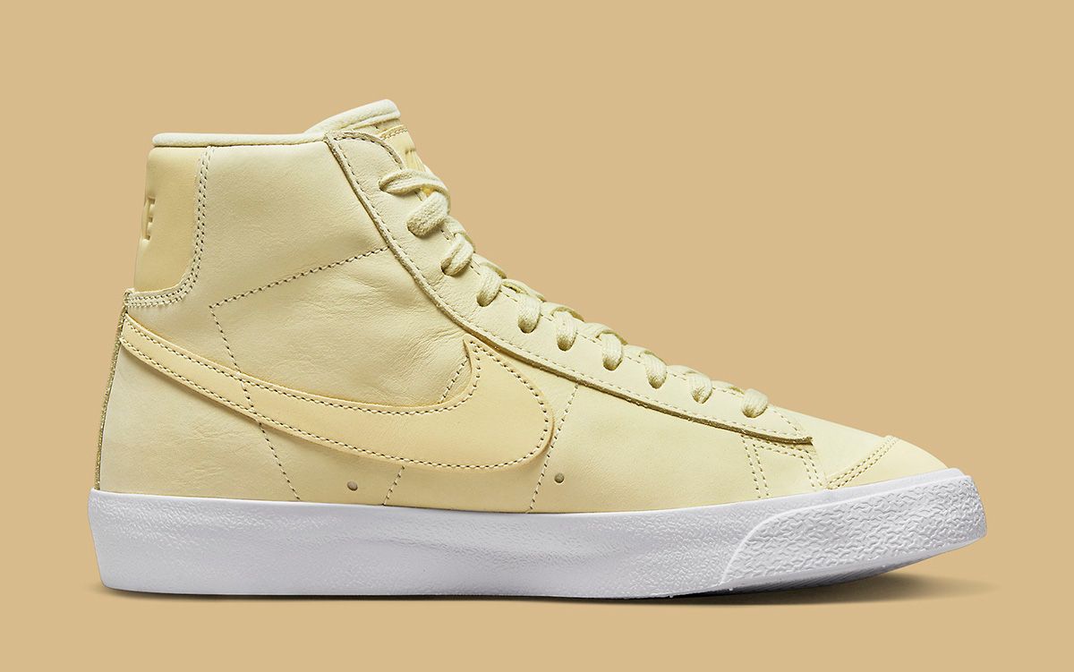 The Nike Blazerwill welcome in the holiday season with a new premium series of tonal leather builds, the next of which has appeared here today in a lemon-tinted palette.