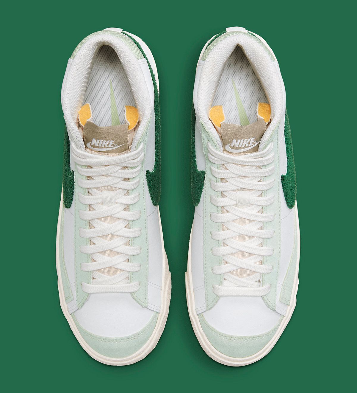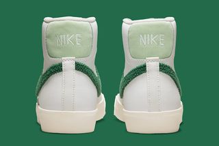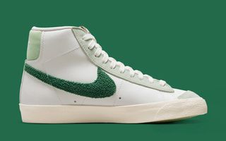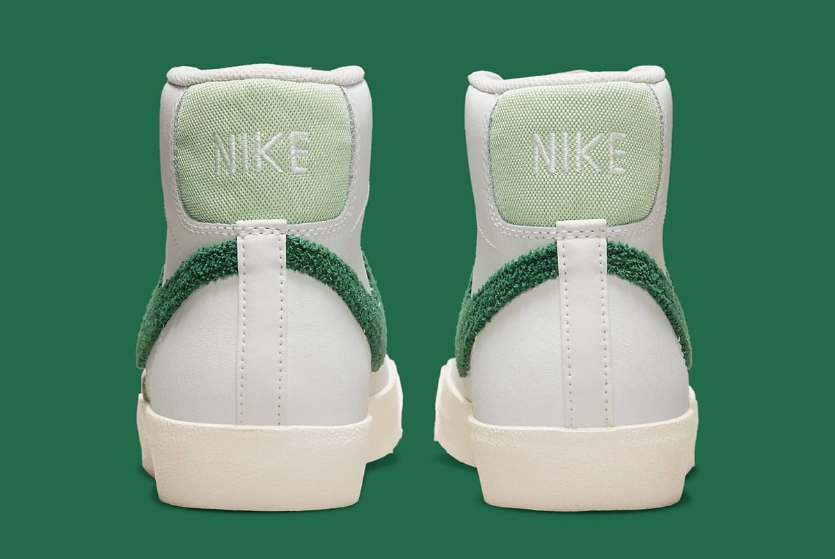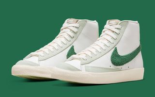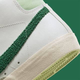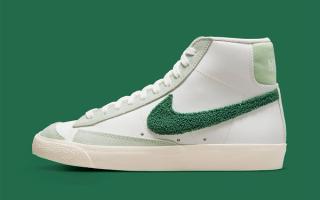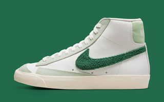 2022 has seen everything from classic Jewel and Jelly Swooshes, to new variations like the “Glitch” and translucent “TPU” Checks fit out the Nike Sportswear range. Now it’s time for an old (but fairly recent) favorite to return, with this Nike Blazer Mid “Chenille Swoosh” bringing back the classic varsity textile in a seasonal ganja green — just a few days after the annual 4/20 celebrations.