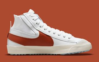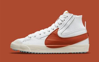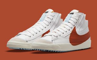 After first revealing itself in a Trailblazers-inspired colorway and then moving to a Low, the all-new Nike Blazer Mid Jumbo is about to embark on a slew of colored-Swoosh, white-based options — the first of which comes fixed with Checks of Dark Russet.