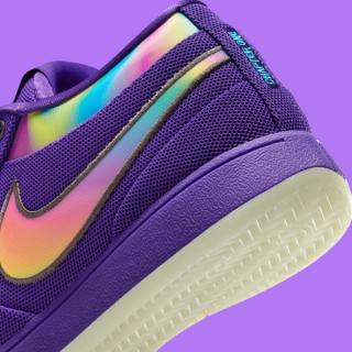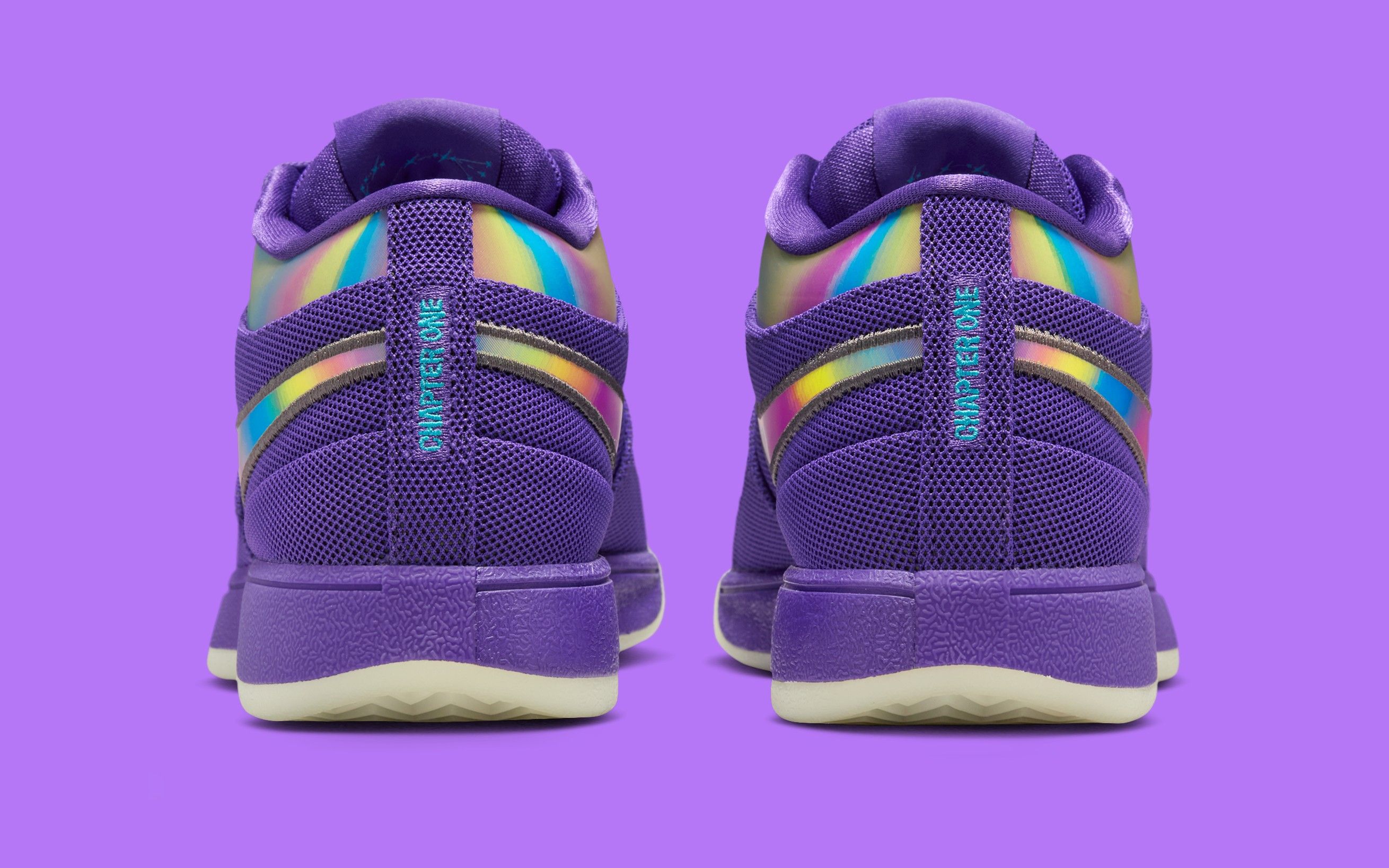 This edition takes inspiration from the shifting colors of the Arizona desert at dusk—a nod to Booker’s home state and his affinity for understated tones with character. The pair features a full mesh and suede construction dressed in rich violet hues, accented by an iridescent chrome Swoosh that mirrors the glow of a desert sunset. The clean sail midsole and gum rubber outsole balance the palette, grounding the shoe with a lifestyle-ready finish that keeps it wearable on and off the court.