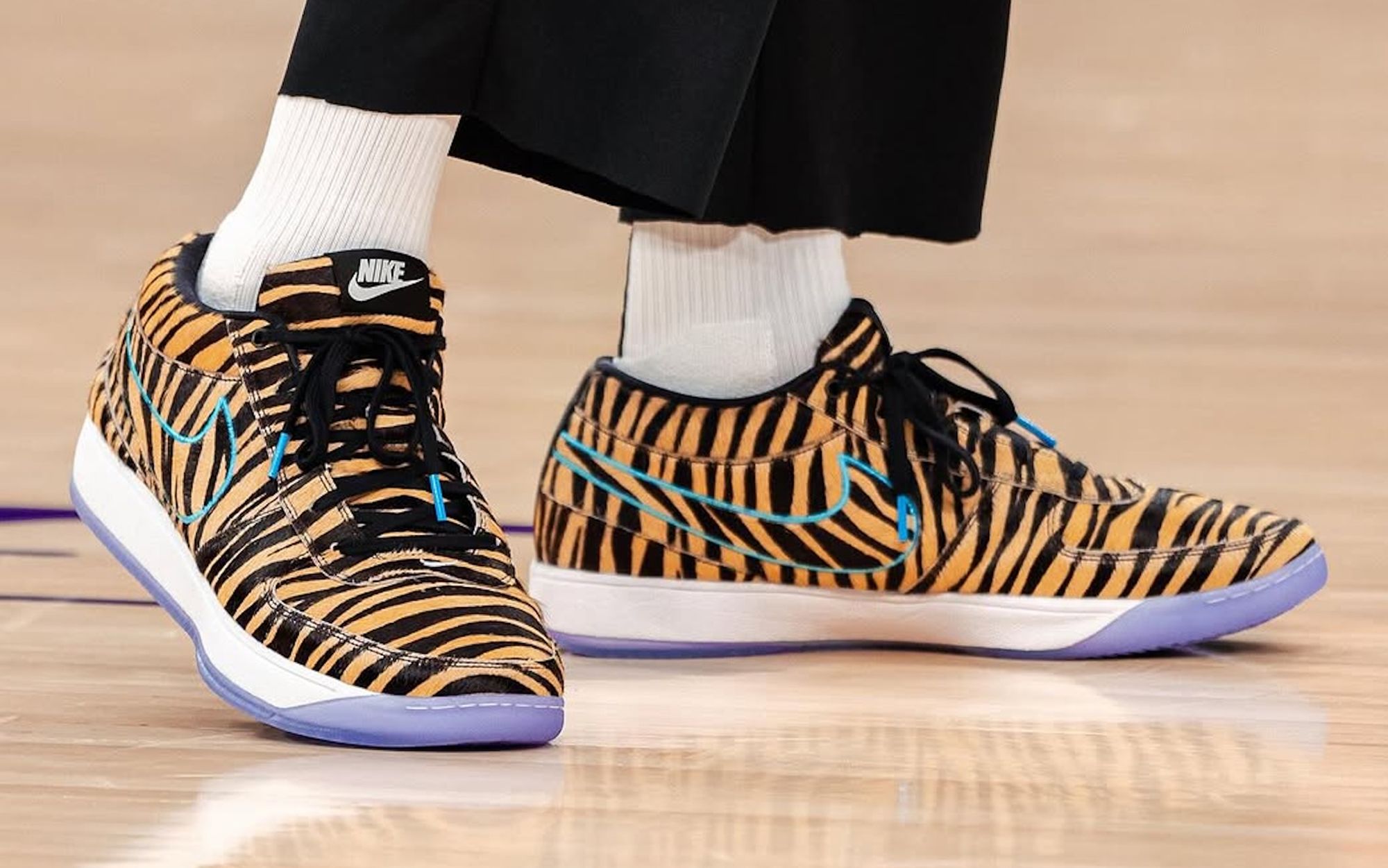 Laced up last night in a loss against the Los Angeles Lakers, Devin Booker's first signature model appeared in one of its wildest makeovers yet. Dubbed 'Son of Moss Point' in honor of he and his father's high school in Mississippi. While not the first Player-Exclusive (PE) to surface in honor of his alma mater, the latest features tiger stripe patterns across the entirety of the shoe's upper. The orange-and-black color scheme doesn't look too out-of-place when paired with the Phoenix Suns uniform, but it draws inspiration from Moss Point High School's mascot. Coincidentally, Booker's father, Melvin, played for the Missouri Tigers in the early 1990s. The Suns guard also follows the Detroit Tigers MLB team, drawing another through-line to the 'Son of Moss Point' makeover.