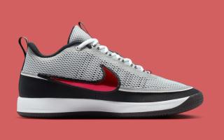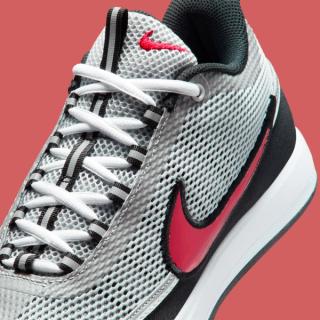 Though the Nike Book 2 was unveiled earlier this season, this “Spiridon” edition pushes the concept into more nostalgic territory. The pair mirrors the visual language of Nike’s classic Air Zoom Spiridon, pairing metallic silver mesh with bold hits of red across the sculpted Swoosh, mini forefoot branding, and tongue detailing. Black overlays wrap the lower portion of the upper, creating a layered contrast that feels both retro and modern.