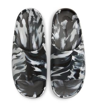 Nike's latest offerings of the Calm Slide borrows the signature "MX" muddled effect from the Adidas Yeezy line. This design approach involves blending monochrome hues - in this case, white, grey, and charcoal, and orange, red, and mauve, to create a visually striking and familiar aesthetic. The result is a slide that captures the essence of West's design language while being distinctly Nike in its execution.