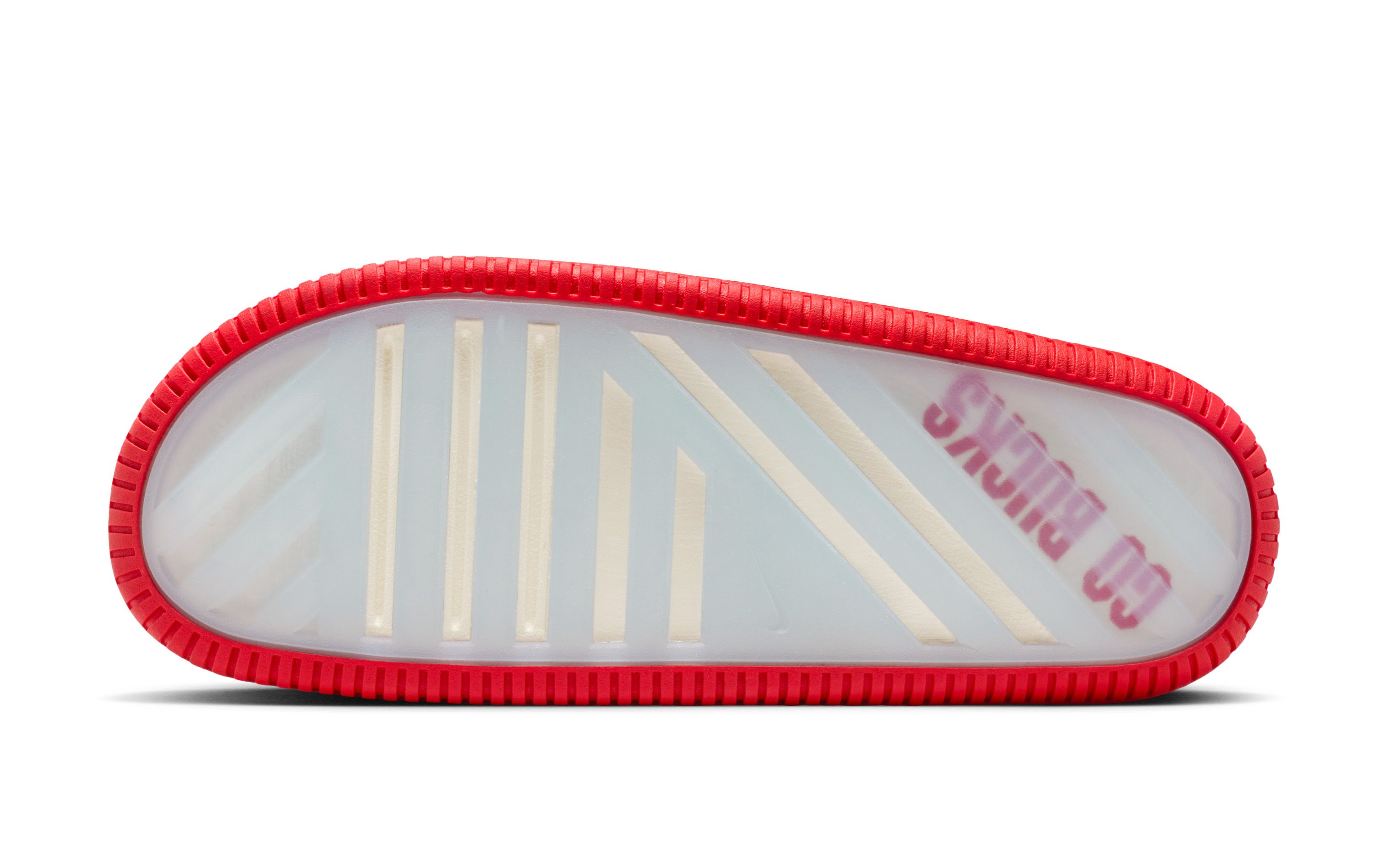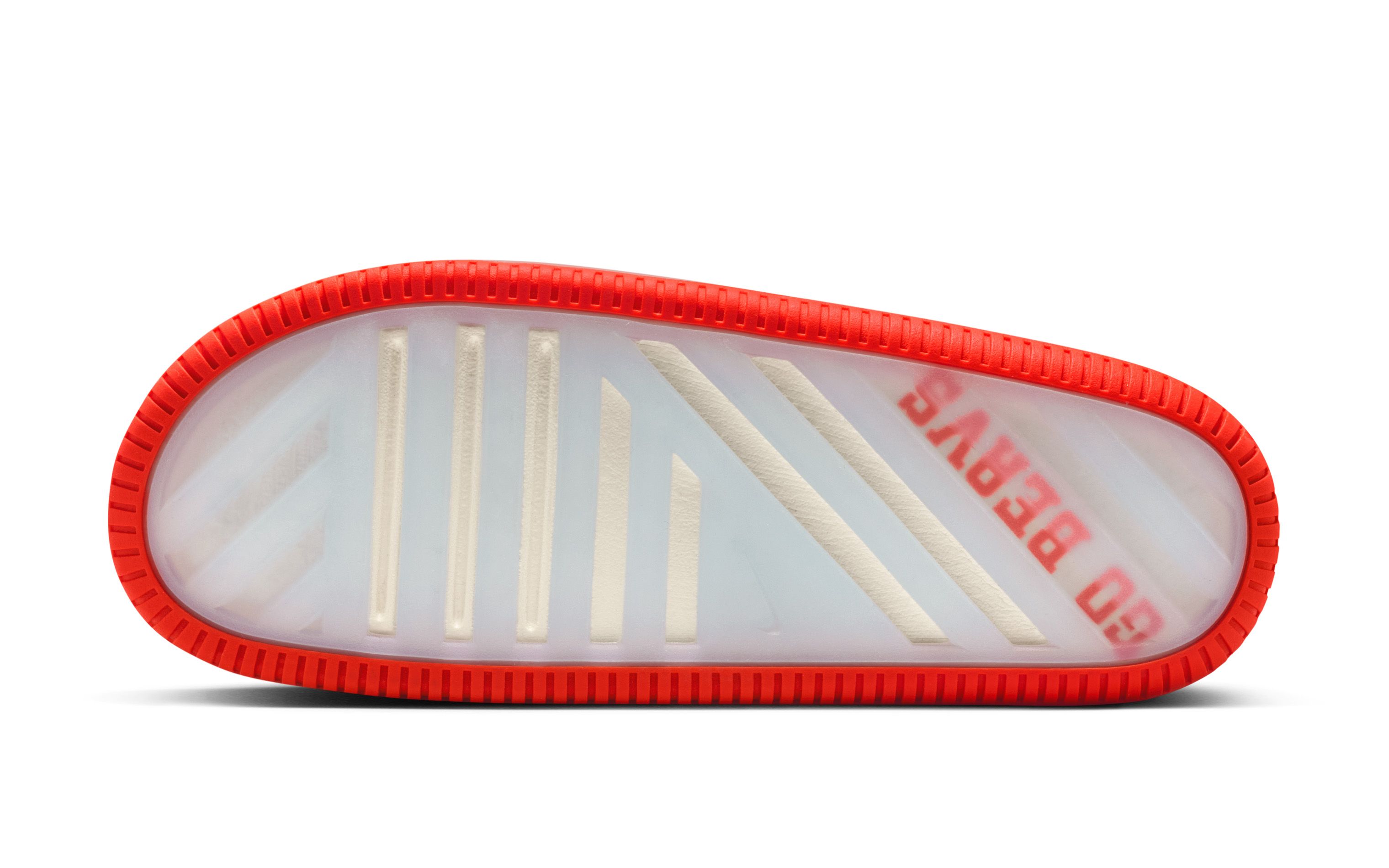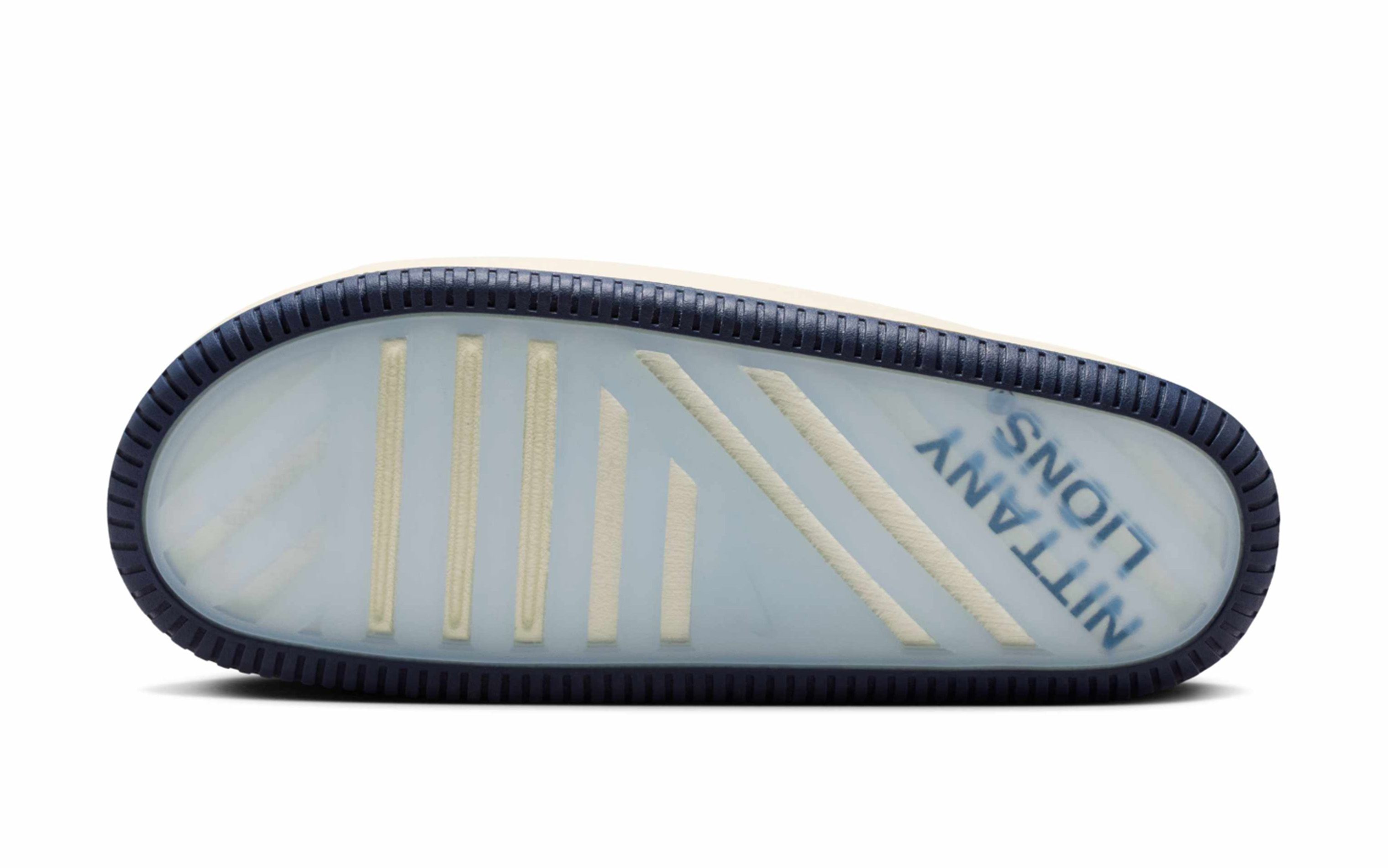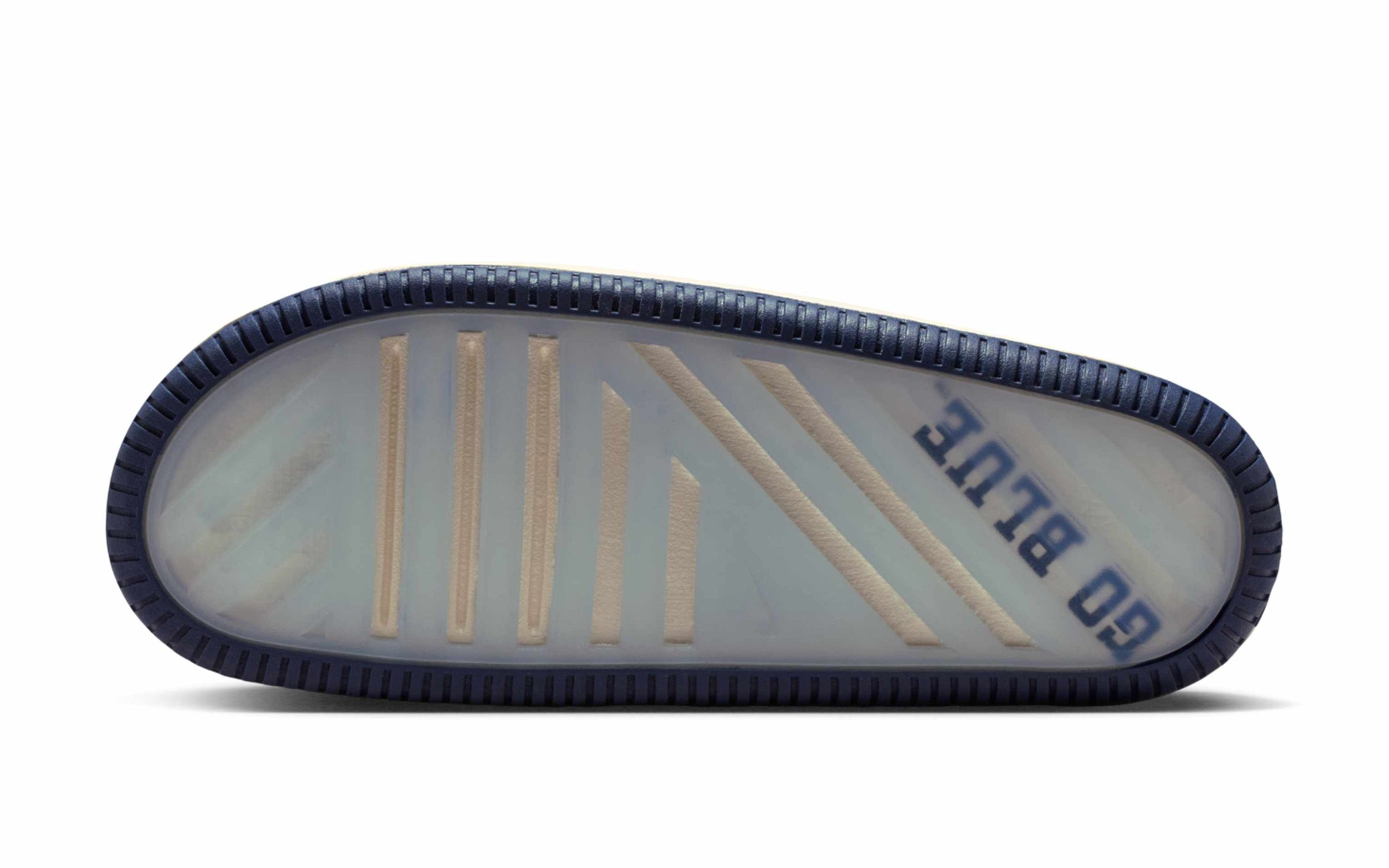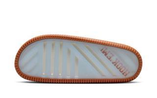 Each pair arrives in a clean sail-colored foam construction, keeping the base uniform across the collection while allowing school-specific details to do the talking. The official team insignia is stamped at the instep, while translucent outsoles reveal bold collegiate slogans beneath — a subtle yet effective nod to campus culture. Team-colored rubber outsoles add contrast beneath the neutral upper, grounding each slide firmly in its respective school’s palette.
