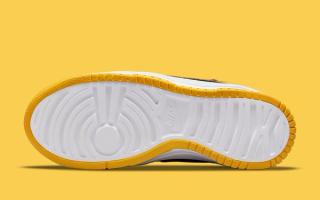 It follows the re-release of the OG Dunk earlier this year, and a matching “Pollen” Air Jordan 1, too, and like those, the pair rips the exact blocking from the original and bestows it upon the modernized design. Here, there’s an added mini Swoosh at the midfoot in white, but everything arrives as you’d expect the Goldenrod to be; black leather uppers and Varsity Maize overlays work with a slightly darker set of University Gold underlays, with color-matched laces, branding, heel stitching, and outsole rings completing the design.