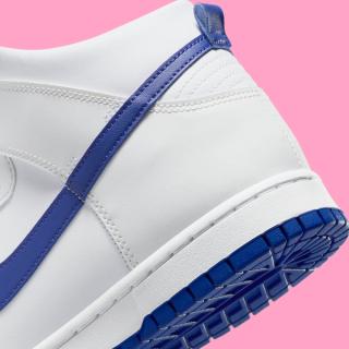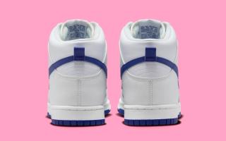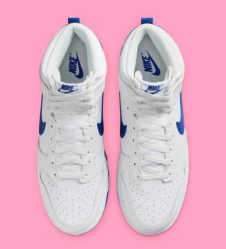 The defining element of this release is the deep royal blue accents, which add a striking visual contrast. These vibrant blue hues adorn the Swoosh overlays and Nike Air motifs on the tongues, infusing the sneaker with a dynamic and eye-catching element. This bold color choice is further complemented by a full-length rubber outsole in the same deep royal blue, tying the design together and adding a modern twist to the Dunk's vintage charm.