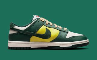 Akin to the Air Force 1 previewed earlier this week, this too is prepared atop an off-white and deep green sole unit, the pair ushers in those exact two hues for the bulk of its tumbled leather upper. Here, though, Nike inserted a striking yellow mid panel — again in tumbled leather — before deploying shaggy suede Swooshes and heel overlays of tonal green hue. There’s more of that vintage look shown on the laces and retro-branded tongues, whilst “Athletic Company” insoles confirmed that pair’s inclusion in what is to be a sizable collection of similarly-themed releases.