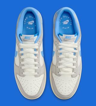 The second Nike Dunk Low “Athletic Department” in a sizable Nike Sportswear series, this new effort deviates from its first effort in material and accentuation. At its core, it's much the same, though, with white leather uppers, sail-tinted midsoles, and light grey overlays and outsoles. Here, the pair prefers a soft nubuck overlay set, and accents of University Blue at the Swoosh, collar, and outsole. A flash of gold brands the heel, while Athletic Dept. insoles complete the design.