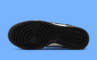 Here, the Dunk assumes its natural two-tone, leather-built state, with smooth white leather uppers overlayed with bold black hues. Its sole unit follows tradition, too, but its tongue selection of black nylon deviates from the classic blocking seen on so many releases past. But the big point of difference here is the championing print, seen here on thick twill at the Swoosh and heel overlays. The pair is then completed by tongue tags and insoles of blue — both trimmed with bright white branding.
