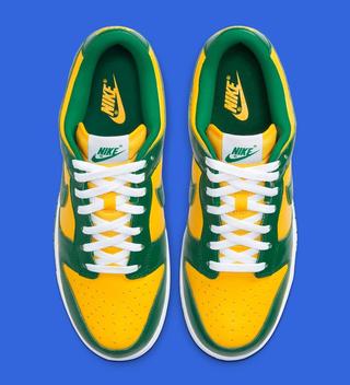 The Dunk Low "Brazil" draws inspiration from Brazil's national flag, featuring a vivacious mix of green and yellow. It mirrors the nation's energetic vibe and passion for life, translating into a sneaker with unmistakable SOuth American style and character.