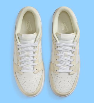 Once again, the Dunk is delivered in a simple leather construct, here utilizing sail for its base layer, before layering on coconut coverings and bright white Swooshes. White returns again on the laces and midsoles, with more hits of coconut coming through on the tongue tags, liners, and outsoles to complete the design.
