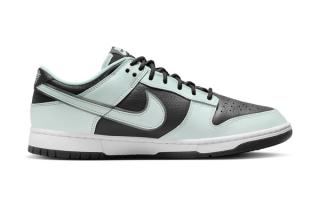 This upcoming Dunk Low variant is a harmonious blend of Dark Smoke Grey, Barely Green, and White, providing a fresh interpretation of a classic. The sneaker's aesthetic is defined by its sleek Black base, which sets a sombre, sophisticated tone. This is complemented by the Barely Green overlays, which add an impactful pop of color. The double-layered Swoosh on the sides is a standout feature, lending an elevated touch to the classic design. 3D-styled “NIKE” branding on the heels nods to the silhouette's expanding legacy, while basketball logos on the insoles further celebrate the Dunk’s roots in hoops culture.