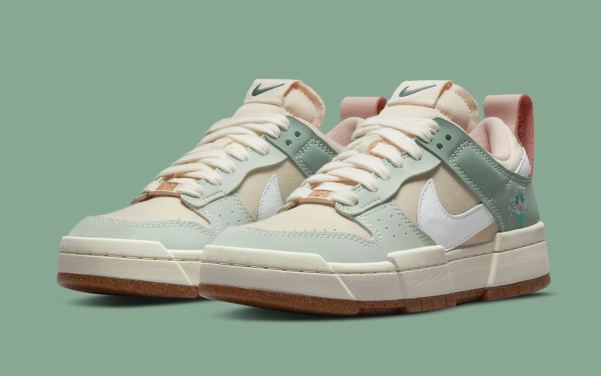 We’ve had Happy Pineapples — now it’s time for Dandy Dandelions. So is the theme for this new Nike Dunk Low Disrupt “Dandelion” which features a whimsical motif at the lateral heel. But while the aforementioned Pineapples featured actual fruit fibers, we can’t be sure if the happy seed head is somewhat responsible for the pair’s construction. While that remains unclear, it is evident that recycled elements have been utilized, from corked insoles to Grind Rubber-flecked soles both present. Elsewhere, you’ll spot a canvas-constructed upper of beige, leather overlays of Sea Glass, and rear pulls of muted pink. the latter features a “DUNK” embroidery motif, while other decorative elements arrive at the forefoot by way of cork-infused dubraes. The pair is then completed by the aforementioned flower motif at the lateral ankle, and a sail and gum sole unit underfoot.
