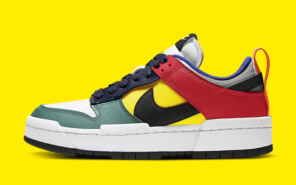 Now, after having revealed the silhouette in its four debut colorways, a fifth, multi-color option has appeared. Here, each panel is equipped with its own hue, from white, yellow, and grey mesh uppers, to leather overlays in green, navy, and red. Rear pulls arrive in orange, whilst liners pop in a vigorous royal blue. Swooshes, tongue tags and outsoles all arrive in jet black, white midsoles and tongue come colored from the other end of the spectrum. Take in a detailed look at the Multi-Color Nike Dunk Low Disrupt here below, and look for these to hit select Swoosh stockists and Nike.com this September for $110.