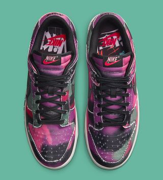 The pair employs a unique rough-cut canvas upper that appears in paint streaks of pink, black, olive and magenta for one of the most interesting finishes we’ve seen on the silhouette so far this decade. It’s met by striking reflective Swooshes of black, with matched-black liners, laces, outsoles and contrast stitching throughout. The pair is then finished with graffiti graphic insoles and special-edition inked boxing.