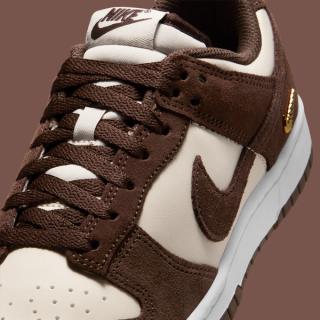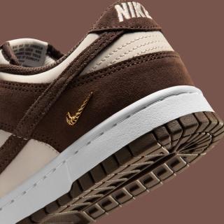 The pair keeps things cohesive with matching brown laces and a Baroque Brown Swoosh, while the stitched gold mini Swoosh at the heel adds a hint of polish. It’s the same small but impactful detail seen across Nike’s elevated Dunk executions, offering just enough shine to differentiate these from GR standards. Underfoot, a white midsole and brown rubber outsole keep the look clean and familiar.