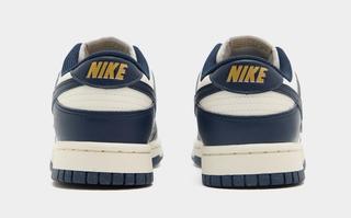 Sharing a like-minded scheme, the pack's Dunk Low boasts an all-sail upper with sail-tinted midsoles to serve as a soft and refined base. Bold Navy blue overlays and soles provided the pair with striking contrast before being softened by an elegant metallic gold finish to the heel and tongue branding, the latter modified in cursive Nike lettering specific to the collection.