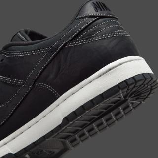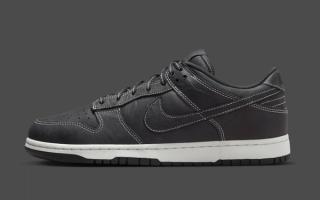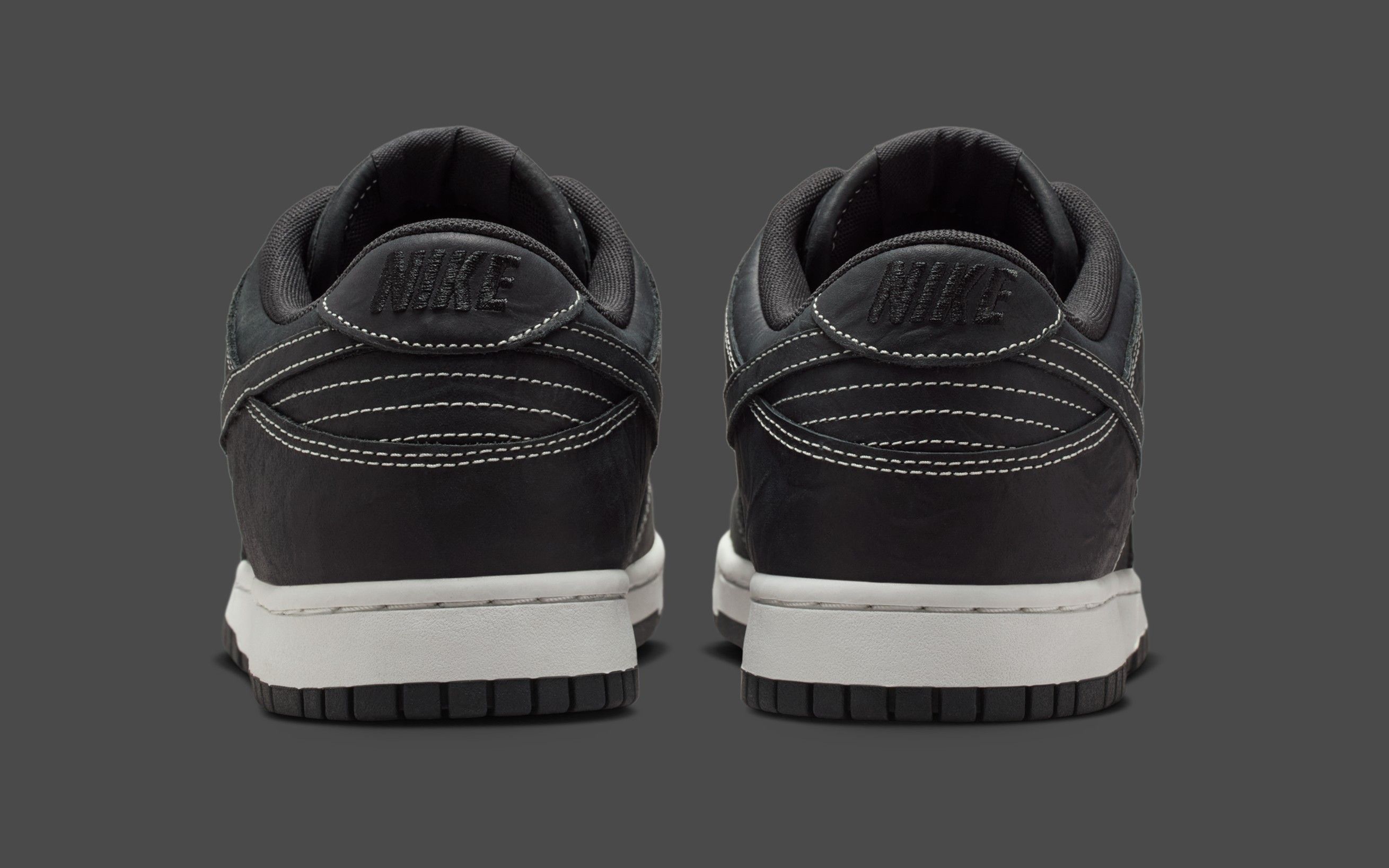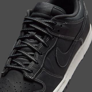 The pair features a premium build with smooth blacked-out leather uppers accented by contrast white stitching across the panels. A clean Summit White midsole gives the shoe a refined finish, while the black outsole ties the design together for a timeless, balanced look. The neutral palette and simple detailing give this Dunk Low the versatility to pair easily with almost anything, whether casual or dressed up.
