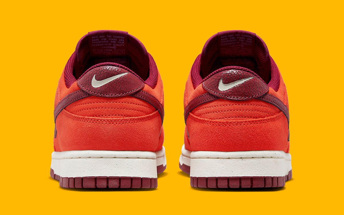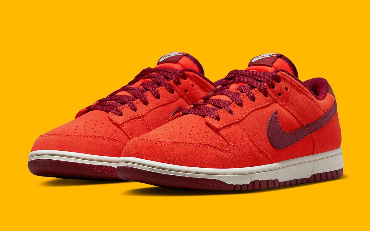 Dubbed the Nike Dunk Low “Orange Suede” for obvious reasons, the pair is struck with an awesome orange hue across it’s entire suede upper. Its nylon tongues follow suit before a bevy of Dark Beetroot accents come crashing in. Outsoles, liners, laces, and tongue tags all feature the hue in staple materials before the Swoosh shakes things up on the Check and heel overlays by calling upon cracked leathers. The heel branding is different, too, with a solo Swoosh sitting behind to complete the design.
