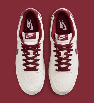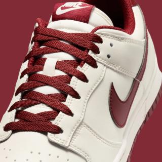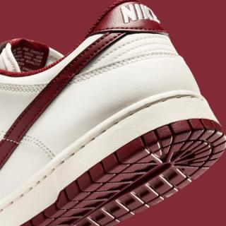 The Nike Dunk Low "Phantom & Team Red" sticks to a clean, familiar formula. Smooth Phantom leather builds the base across the toe box, quarter panels, and collar, giving the shoe a soft, slightly aged off-white tone. Rich Team Red accents arrive through the leather Swoosh, heel tab, tongue label, and laces, delivering a sharp contrast that recalls classic collegiate color blocking. Underfoot, a Sail-toned midsole keeps the vintage aesthetic intact while a matching Team Red outsole completes the look.