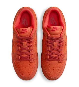 This edition of the Dunk Low celebrates monochrome mastery, decked entirely in vibrant Picante Red. The sneaker swaps out traditional leather for an all-suede construction, giving it a luxurious texture that's both visually appealing and pleasant to touch. This choice of material extends across the upper, overlays, tongue, laces, and lining, enhancing the uniformity and upscale feel of the design.