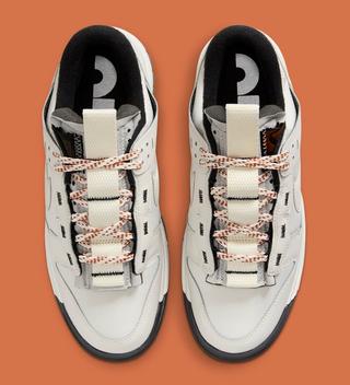 The design is anchored by a bone ripstop upper, complemented by tonal leather overlays that impart a sturdy, high-quality feel to the shoe. Bookending blacks on the rubber outsole and liner establishes a sleek aesthetic, bringing an understated balance to the look. Extended cream tongue pulls crafted from heavy-duty twill, while hiking boot-inspired laces in a mix of white and curry hues add a distinctive and practical touch, leading up to tongue tags enlivened with the same curry shade.