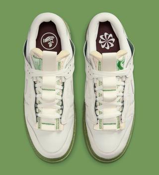 The green stitched accents are added to the overall design, subtly interspersed for an additional layer of detail. The rich brown insoles further the environmental theme, nodding to the Dunk's eco-friendly construction and its connection to the outdoors.