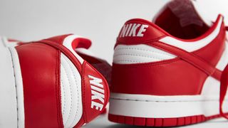 Last seen circa 2005, the “St Johns” Dunk Low is a reincarnation of the original Dunk “Be True to Your School” Pack from 1985, and is a bonafide Nike classic. The new generation of sneakerheads will get to enjoy the simplistic red-and-white release for the first time, whilst old heads get to relive their glory days in a true to OG reissue. Here you can expect soft leather uppers, mesh tongues, and midsoles in white, with leather overlays, liners, laces, and outsoles all arriving in University Red. Completing the design are classic two-tone Nike tongue tags, and rear NIKE branding stitched in white.