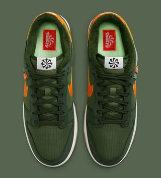 The release will feature ribbed nylon-like upper and tonal suede overlays of Sequoia green, with tonal overlays of recycled materials in all the typical placements. Contrasting orange hues accompany the pair in UNDEFEATED/flight jacket fashion, hitting the Swooshes and rear overlays, while a classic white and gum sole unit sits underfoot. The pair’s titular Toasty liner is present — again in tonal green — while the insoles opt for the signature Move to Zero neon, complete with special tagging.