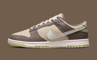 At its core, this new Nike Dunk Low is basic; Smooth leather constructs are carried throughout the pair is simple color blocking. Its hues of beige and muted brown are nothing new either, having recently surfaced in inverse blocking on the Nike Dunk Low ‘Mocha.” What is different, though, is the pair’s aforementioned add-ons, as well as an atypical use of Barely Green on the outsole. That hue is not standalone, though, as the Swooshes and heel overlays wear away to reveal panels of matching green — so too is the tongue’s embroidered motif.