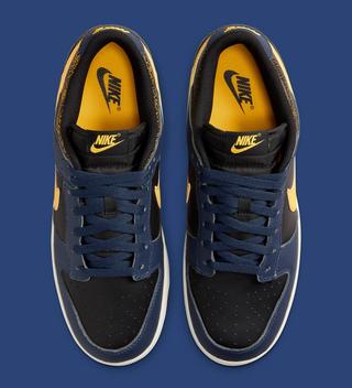 While the navy/yellow colorway may evoke memories of Michigan, it's important to note that the color-blocking on this pair differs significantly from the original Be True creation from the 1980s.