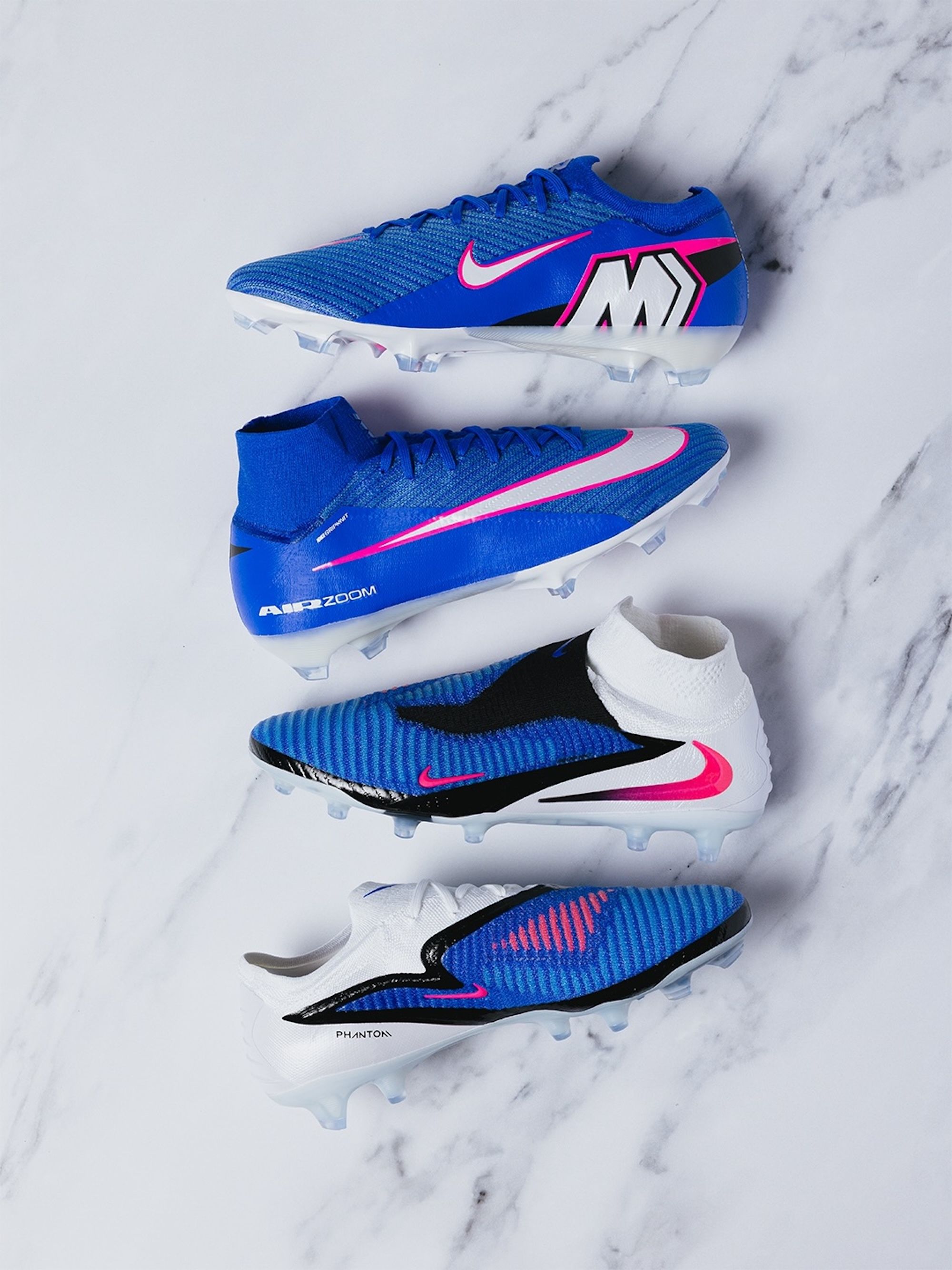 As with previous concerted efforts, the newly-surfaced range includes the Mercurial 16, Mercurial Superfly 10, and Phantom 6 Low and High. Each take sees the aforementioned blue tone claim the bulk of real estate across performance-first builds, delivering bold ensembles for action on the pitch. Swoosh logos and other elements opt for contrasting, but equally-statement-making pink flair, a combination of colors that would fit in with any Spring 2026 lineup.