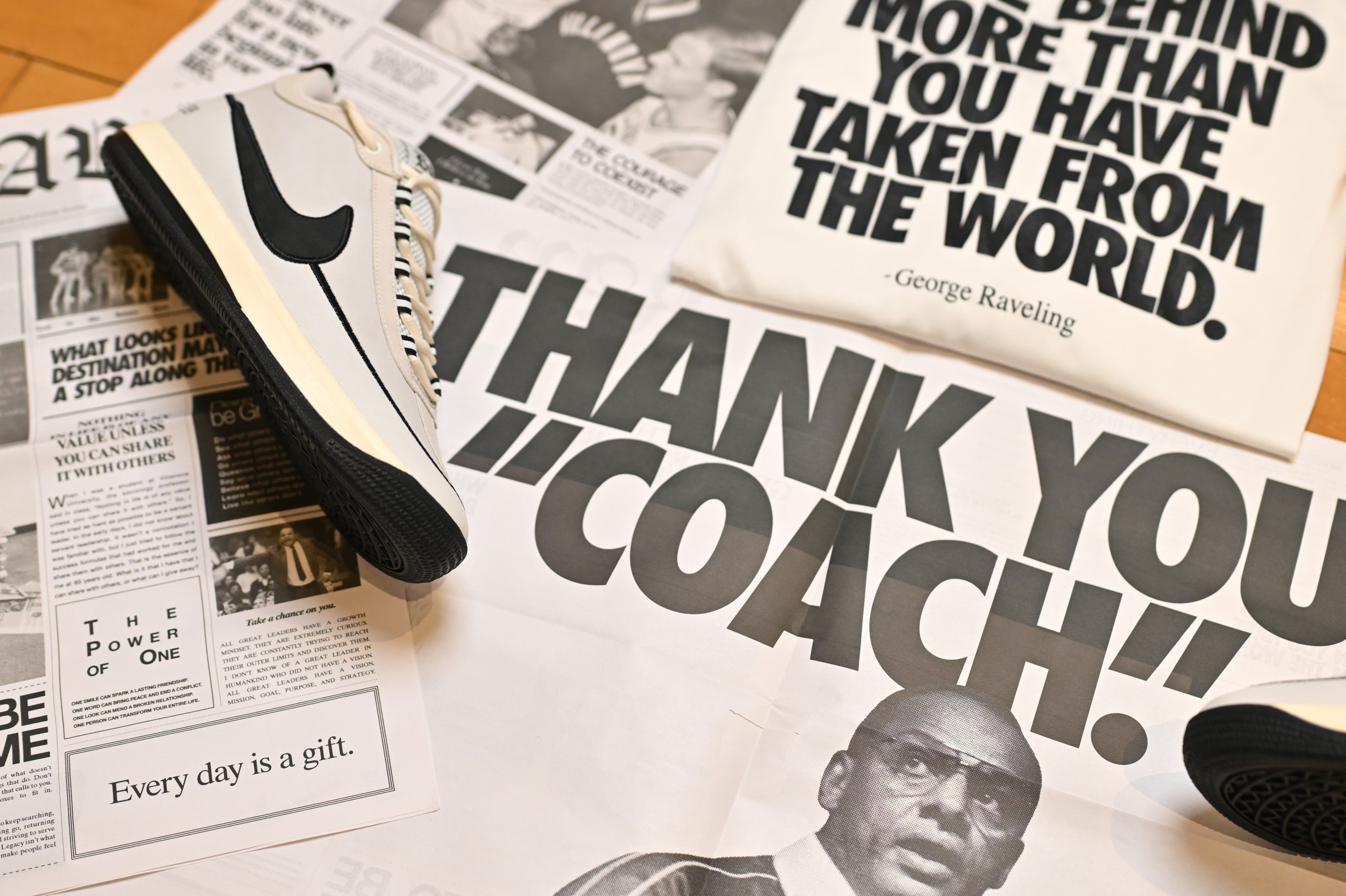 Connecting Raveling’s influence to today’s game, Nike has created a custom “Coach Rav” Book 2 PE, worn by Devin Booker and later shared with select teams connected to Raveling’s journey. Participating teams will also wear shooting shirts featuring one of Raveling’s most enduring quotes: “Aim to leave behind more than you have taken from the world.” Coaches involved in the week’s programming will complete the look with custom Air Force 1s.