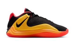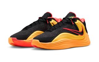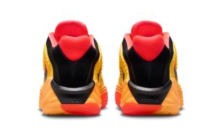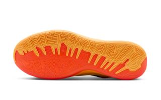 Though not officially tied to Bruce Lee’s iconic Game of Death suit — nor to the famed Kobe and Kyrie interpretations that followed — the visual cues are hard to ignore. A dominant black upper sets the stage, allowing the sculpted midsole to fade from rich Laser Orange into a deeper golden hue underfoot. The exaggerated, wave-like tooling gives the silhouette motion even at a standstill, amplifying the drama of the palette.