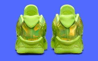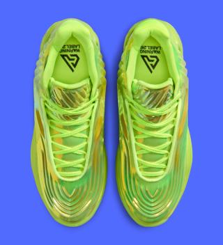 At its core, the Freak 7 LX builds on the visual language established by this GR "Volt" Freak 7, but elevates it significantly through materials and packaging. The upper moves away from traditional mesh in favor of a Foamposite-like shell, finished in a glossy, iridescent Volt treatment that shifts under light. The effect gives the shoe a sculptural feel, closer to Nike’s heritage-statement models than to a standard team colorway.