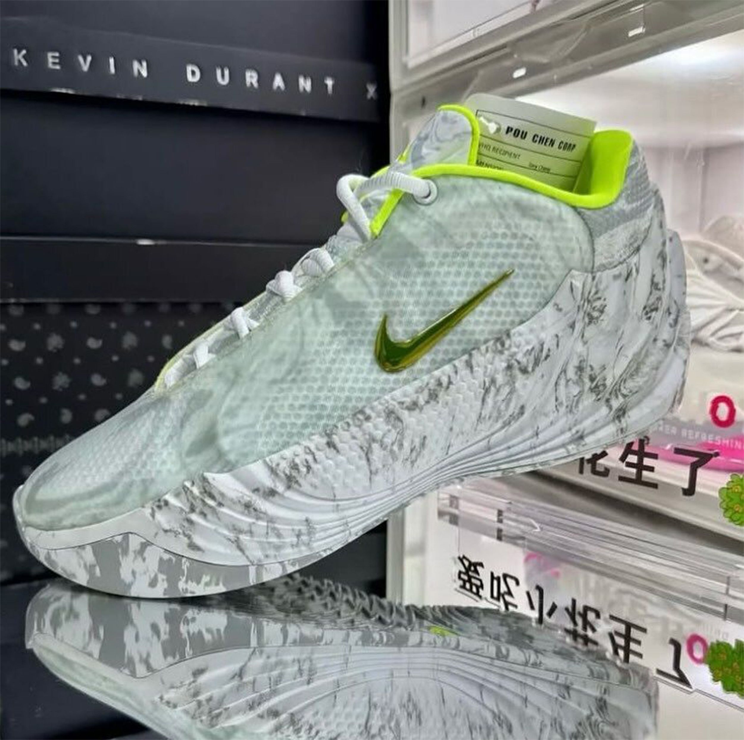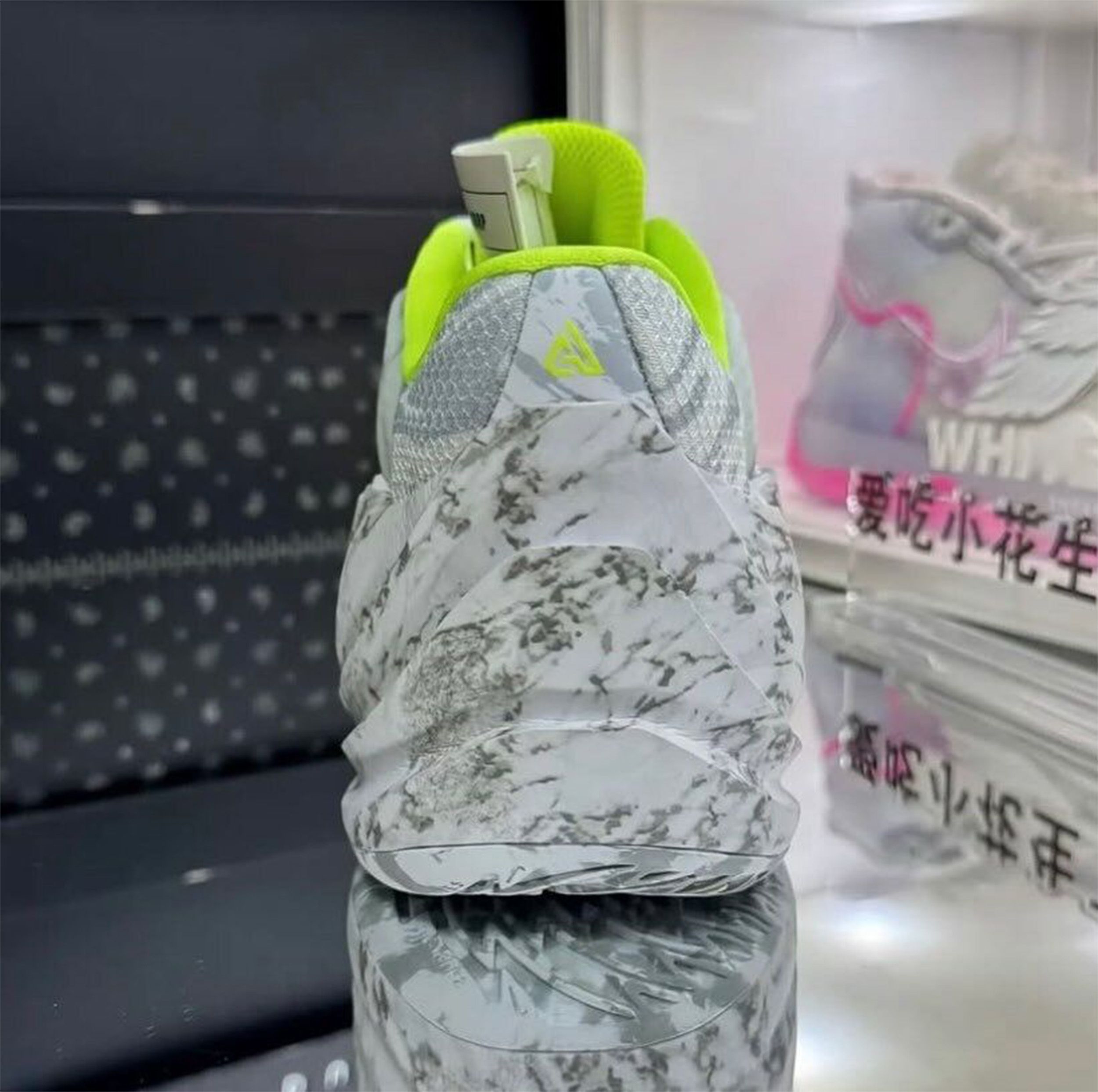 Where the debut pair leaned heavily into statement energy, this Wolf Grey/Volt edition balances neutrality with flash. The upper arrives in layered shades of grey, featuring a mesh base wrapped in a subtle marbled graphic that extends down into the sculpted midsole. That stone-like pattern gives the shoe a textured visual identity without adding bulk, reinforcing the Freak line’s consistent focus on lightweight containment.