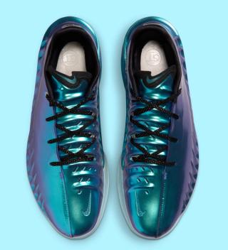 Set to launch in early 2026, the new model builds upon the success of the GT Cut line with a futuristic design language and performance-led innovations. The pair spotted on Bueckers features a striking iridescent upper that shifts between aqua and violet tones, balanced by Persian Violet laces and interior padding. Aggressive ridges wrap the lateral and medial sides of the shoe, creating a sculpted visual identity that’s both aerodynamic and bold. A refined mini Swoosh sits low along the midsole, and a partially translucent outsole provides grip underfoot.