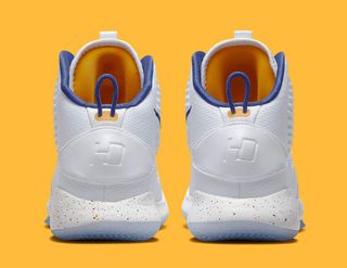 Fans of the Zoom Air-loaded, mid-cut monster will be very pleased as this new colorway looks back to the sneaker’s origins with Kobe Bryant, as it takes on a classic Lakers color scheme of white, purple, and gold. Though not overt in its association, all the signs are there; a pure white jersey mesh upper with liners of Concord Purple and eyestays of gold ties closely to the franchise’s white kit, while all three colors converge on the flecked midsole. Icy outsoles rest underfoot, with signature HD (10) branding in the back rounds out the design.