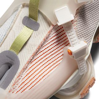 Claimed to be limited to just 8000 pairs worldwide, the sneaker — whose name is yet to be revealed — serves up a concoction of tech, utilitarian hardware, and responsiveness to a degree that we’ve never seen before. First looks indicate that these may well be based on the Nike LeBron 15, due to its overall shape, segmented Air units, and extensive use of pulls. The mid-rise woven sock upper is segmented into a camel toe, and sports multiple different weaves, colors, and textures. It’s encased at the toe and heel by milky translucent guards, both of which hold connections for the snowboot-like lock-down bindings across the vamp. Underfoot you’ll find a foam midsole, Zoom Air pods — double-stacked at the midfoot — and a spring suspension in the rear. Outsoles are as aggressive as they get, sporting a seemingly randomized Waffle tread in varying sizes.