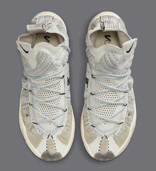 Its high-top shape is reminiscent of Nike Hike and Nike ACG propositions of the 1980s and ’90s, as well as the HTM Chukka styles of the mid-2010s, but these eras are giving a jolt thanks to extensive padding and oversized cushioning to keep the pairs in-line with ISPA’s overarching design ethos. In conjunction with the woven upper up top, the Swoosh has employed pockets of recycled threads along the side walls, with sustainability continuing down to the Grind Rubber sole units underfoot.