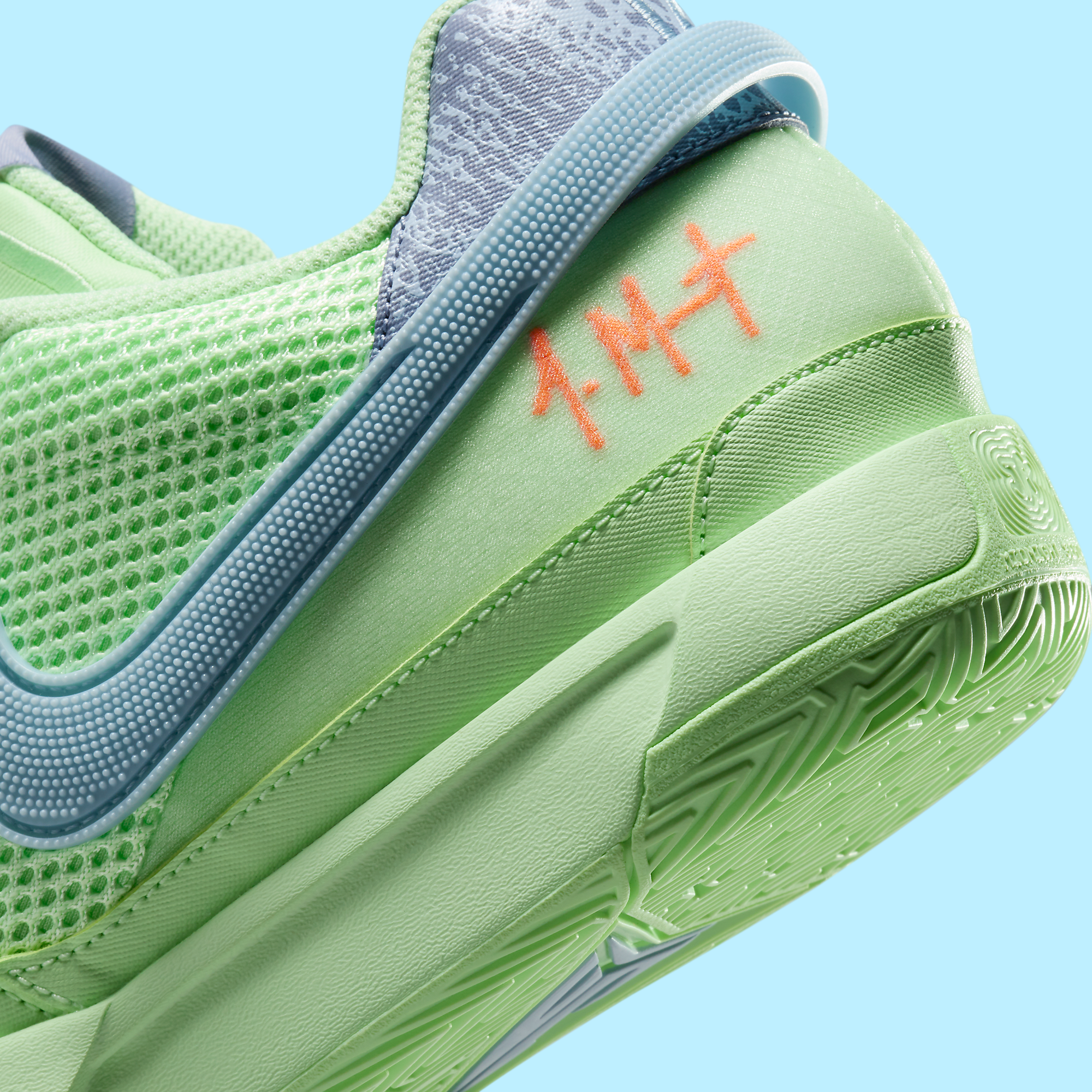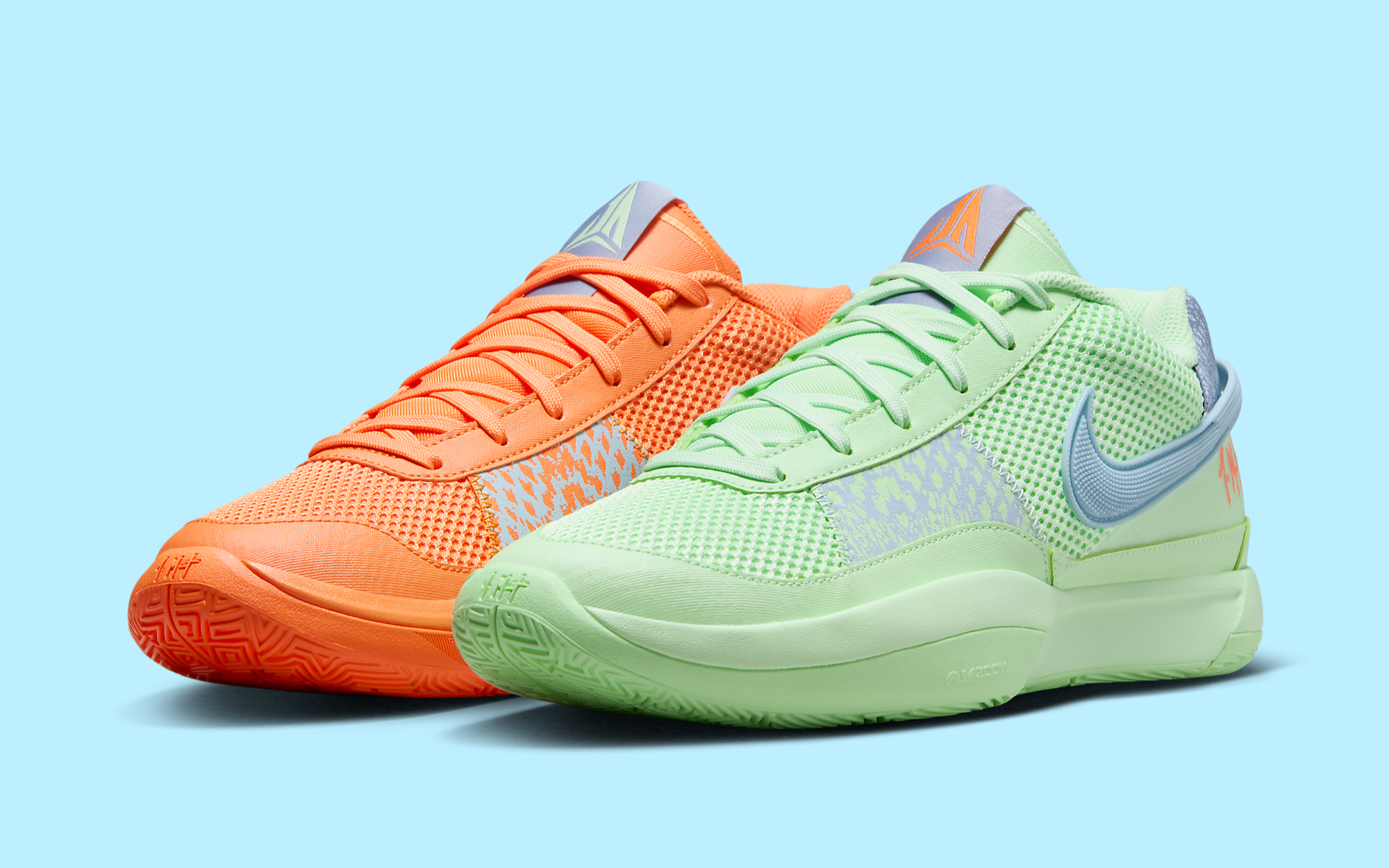 The concept of contrasting sneakers within the same pair mirrors Morant's dynamic and unpredictable style of play to the court. This approach is not new for the Memphis Grizzlies star, as seen in previous editions like the Nike Ja 1 “EYBL,” which showcased a transition from aquamarine to fuchsia, and the “Hunger” colorway, striking a balance between red and navy. The "Mismatch" design, however, takes this concept to new heights with its selection of "Bright Mandarin" and "Vapor Green," vibrant pastel hues that are perfect for the summer. While these colors might not seem complementary at first glance, they blend harmoniously, particularly on the heel where the secondary color adorns Morant's branding, creating a visually compelling aesthetic.