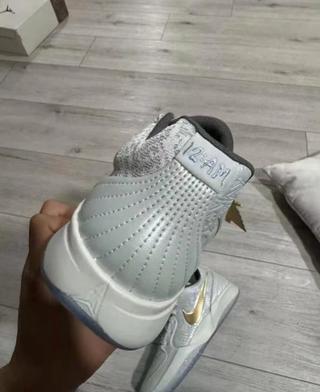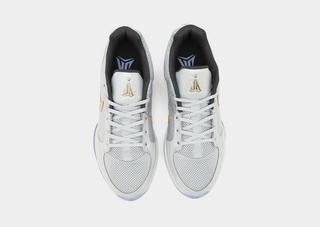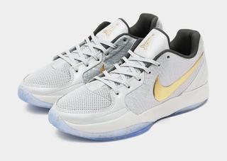 The Nike Ja 2 "Xmas" (Tree Topper) features a striking light silver upper, adorned with a lasered snowflake-like texture that mimics the intricate patterns of winter frost. This subtle yet intricate detailing captures the essence of a white Christmas, making it a perfect fit for holiday festivities and winter games. Adding a touch of luxury to the frosty design, the sneaker boasts a metallic gold Swoosh and a matching hang tag, both of which enhance the festive look with a bright contrast.