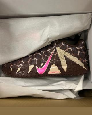 The Nike Ja 3 "Jaraffe" leans into playful territory with a giraffe-inspired pattern across the upper. Brown and tan overlays mimic the animal’s distinct markings, while a vibrant pink Swoosh slices through the lateral side, adding contrast and tying into Ja’s ongoing preference for bold accent hits. Underfoot, a chocolate-toned midsole wraps around ZoomX cushioning, with angular traction patterns reinforcing the silhouette’s aggressive stance.