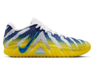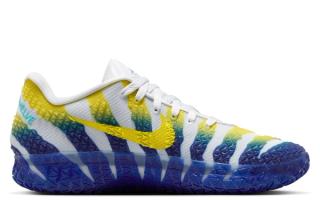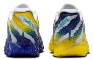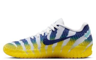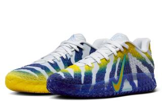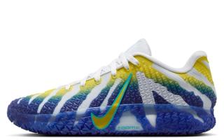 Nike Basketball recently unveiled an official look at the popular hoops model in a "Pure Platinum/Lightning/Dusty Cactus/Deep Royal Blue" color scheme. The bold look animates the busy build with tones that reference the Kentucky-based university's signature tones. Asymmetrical presentations take over right and left shoes, with a matte silver-reminiscent hue interrupting the Racers-friendly ensembles.