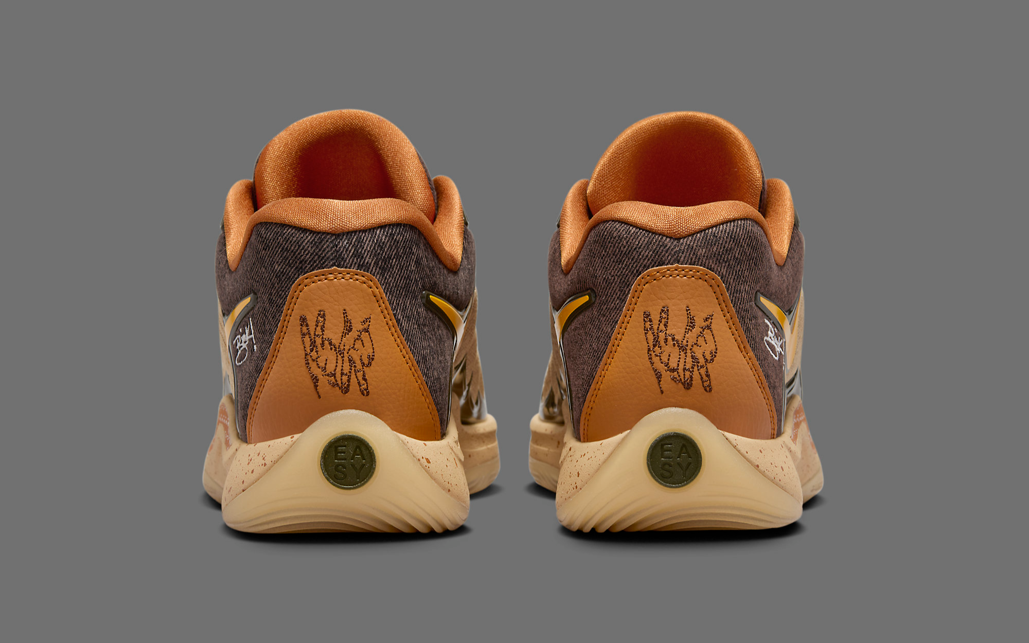 The KD 17 "Bink!" edition is a masterful blend of aesthetics and homage, featuring an earth-toned colorway that intertwines shades of brown, tan, and orange. This sneaker isn't just a nod to Bink!'s sonic achievements; it's a canvas that tells the story of his impact on the music and basketball worlds. Bink!’s signature is elegantly stitched in white beneath the Swoosh, a personal touch that signifies Durant's deep respect for the producer's craft.