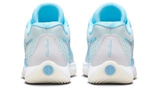 The "Aquarius Blue" colorway takes inspiration from winter elements, with a perfect blend of icy blues and light whites that evoke the feeling of snow and cold winter days. The combination of these colors gives the sneaker a crisp, cool aesthetic that’s ideal for the season. Adding to the holiday charm, the EASY MONEY logo appears on the tongue, a subtle but notable nod to Kevin Durant’s iconic branding.