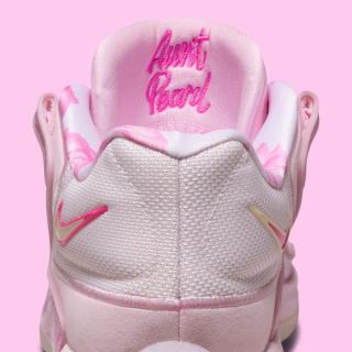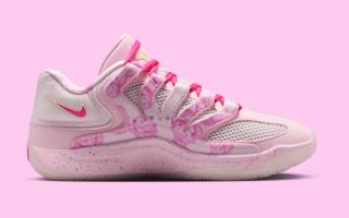 The KD 4 from 2012 kicked off the current Houston Rocket's homage to his family member, but the style—usually a pink-heavy color scheme complemented by either pearl or floral graphics—has landed on all mainline Nike KD designs since. The KD 18 "Aunt Pearl" doesn't deviate from the theme's signature elements, but opts for a lighter-colored makeover overall.