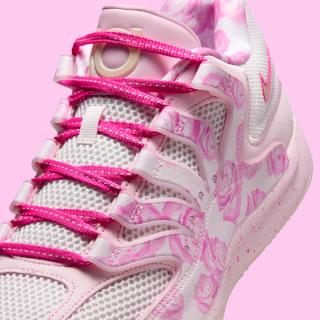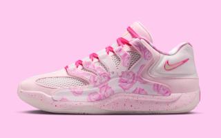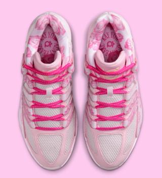 The bulk of the sneaker features a faint shade of pink. allowing for the floral print across the profile "cages" and inner lining to revel in the spotlight. Laces also command attention with their fuchsia-like finish. Swooshes on both sides of the heel also play with the sneaker's color palette, which presents a speckled touch on the midsoles. Initial photos from size? don't reveal any direct call out to Durant's great aunt, nor the cancer that ultimately cost her her life, but these details could arrive on the tongue's underside or throughout packaging.