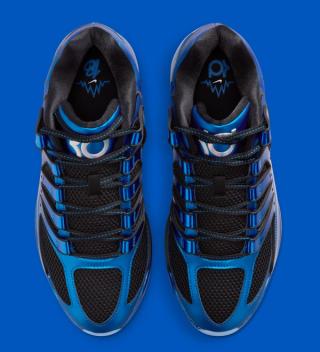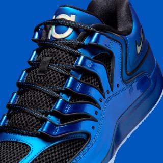 An unmistakable nod to the original Air Foamposite One, this pair echoes the iconic “Royal” colorway through its vibrant metallic blue finish. Glossy molded overlays hug the black mesh base, adding structure and shine, while giving the KD 18 a similar futuristic edge that made the Foamposite a legend. Branding details include a large KD emblem on the tongue and a reflective silver Swoosh on the heel panel.