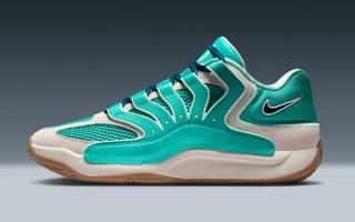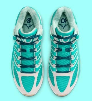 The “Wanda Pratt” colorway features a refreshing mix of Midnight Turquoise, Phantom, and Kinetic Green. The design exudes calm strength, symbolizing the support and resilience Durant attributes to his mother’s influence.
